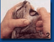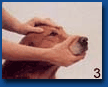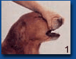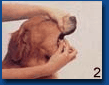 | Pilling a Dog 1) Gently take hold of the head from above, placing your thumb and fingers on either side of the muzzle. Squeeze firmly in and up just behind the canine teeth ("fangs"). The dog's mouth should open. 2) Use your free hand to hold on to the pill while lowering the animal's jaw. With the mouth open wide, place the pill as far back on the tongue as possible, pushing it even farther with your index finger. 3) Gently close and hold the muzzle while your dog swallows. You can encourage this by stroking the underside of the throat downward. 4) Finally, give your dog lots of praise and reinforcement each time he swallows a pill.