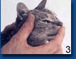 Pilling a Cat 1) Have someone hold your cat's front legs and chest from behind so you're free to do the rest, or vice versa. If you have trouble, wrap a blanket or towel around your cat. 2) Put your hand on top of the cat's head, avoiding the lower jaw. Raise the head until your cat's nose points to the ceiling. As the mouth opens, use your other hand to hold the pill and press down on the lower jaw, pushing the pill as far back on the tongue as possible. 3) Close your cat's mouth, making sure you and your partner keep a firm hold. Rub the nose. This will force your cat to lick its own nose, which makes swallowing easier. Remember to give plenty of praise each time your cat swallows a pill.